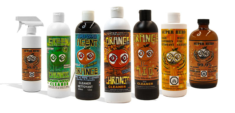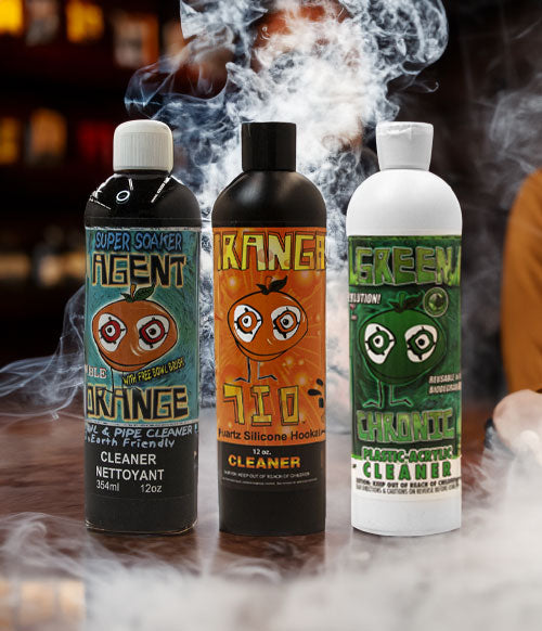 Präsentieren Sie Orange Chronic in Ihrem Tabakladen und bieten Sie Ihren Kunden eine Reinigungslösung, die sie lieben werden! Der Orange Chronic Agent Orange Super Soaker Cleaner mit Bürste (12er-Pack) ist eine biologisch abbaubare Reinigungslösung aus natürlichen und nachwachsenden Rohstoffen. Agent Orange eignet sich zur Reinigung aller Arten von Materialien wie Glas, Metall, Quarz und sogar Silikon. Die Lösung ist gebrauchsfertig und überzeugt durch sofortige Ergebnisse. Eine Flasche enthält 12 oz, jede Packung enthält 12 Flaschen.