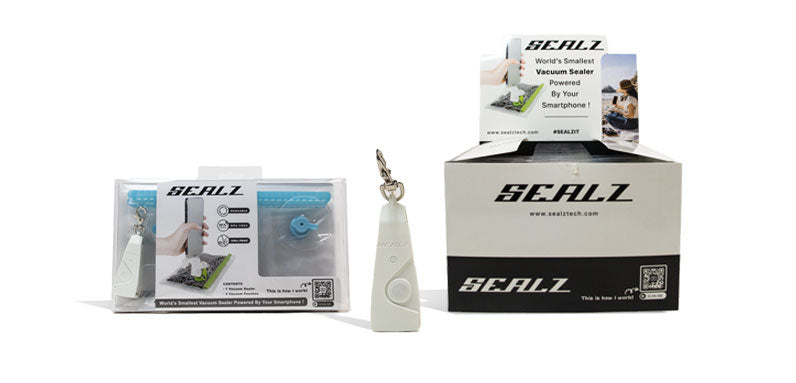 Füllen Sie Ihre Regale mit etwas Nützlichem und Praktischem! Der Sealz Essentials Handy-Vakuumierer wird an Ihr Smartphone angeschlossen und erzeugt die Versiegelung seiner Markenbeutel. Der Adapter ist ein USB-A-auf-USB-Typ-C-Stecker, der vakuumiert und dicht verschließt. Jedes Display enthält 12 Sets mit jeweils drei Vakuumbeuteln in verschiedenen Größen: klein (14 g), mittel (35 g) und groß (112 g). Die mitgelieferten Vakuumbeutel sind geruchsneutral und ideal für unterwegs. Bieten Sie Ihren Kunden etwas, das sie täglich nutzen können!