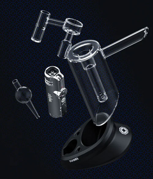 The HAMR Cold Start Dab Rig works by simply dabbing concentrates using a lower temperature to preserve the terpenes for a more potent hit. The traditional dab rig heats up dabs to high temperatures which ends up scorching the terpenes. This dab rig does the exact opposite offering ideal low temperature dabs or “reverse dabbing”. When a user reverse dabs they put the concentrate on the nail first. This ensures the concentrate won’t overeat because the typical technique is reversed. Inhales as soon as the concentrate begins to bubble for smooth draws. Not only does it provide pure flavors but also the practice inflicts less wear and tear on the included accessories.