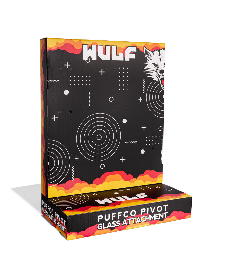The Wulf Mods Pivot Tops themselves have been crafted from high quality borosilicate glass for life-time usage and fit easily on top of the Pivot’s chamber. The Pivot Tops elevate the concentrate experience via their expanded air pathways and thumb operated carb giving shoppers more control over the flow of their vapor. This allows for stronger potency, better flavors, and fuller clouds all with one simple attachment. Made to work exclusively with the Puffco Pivot Mobile Vaporizer, the Wulf Mods Pivot Tops 45pc Countertop Display is the perfect way to capitalize on the Puffco gold rush and boost your sales.